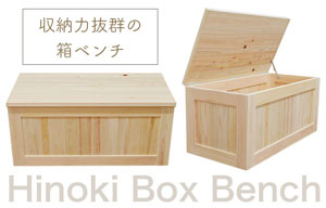 国産ひのき収納付き箱ベンチ 中に収納のできる椅子